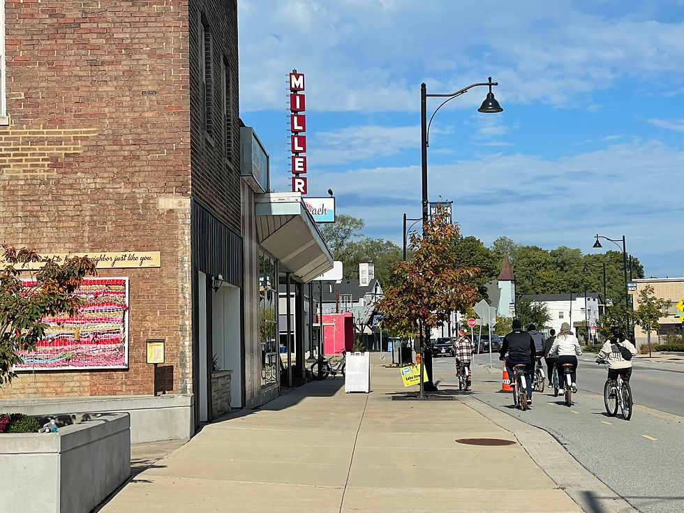 (ID: Cycle219 Bike Share Hubs are strategically located near bus stops and train stations. In October Cycle219 partnered with Save the Dunes' NWI Thrive initiative to host a slow roll from the Miller Southshore Station in Gary, Indiana.)